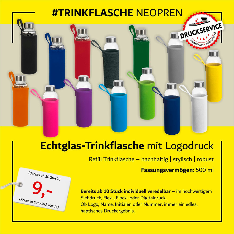 ab 10 Stk. | TRINKFLASCHE NEOPREN inkl. Logodruck ---> Staffelpreise